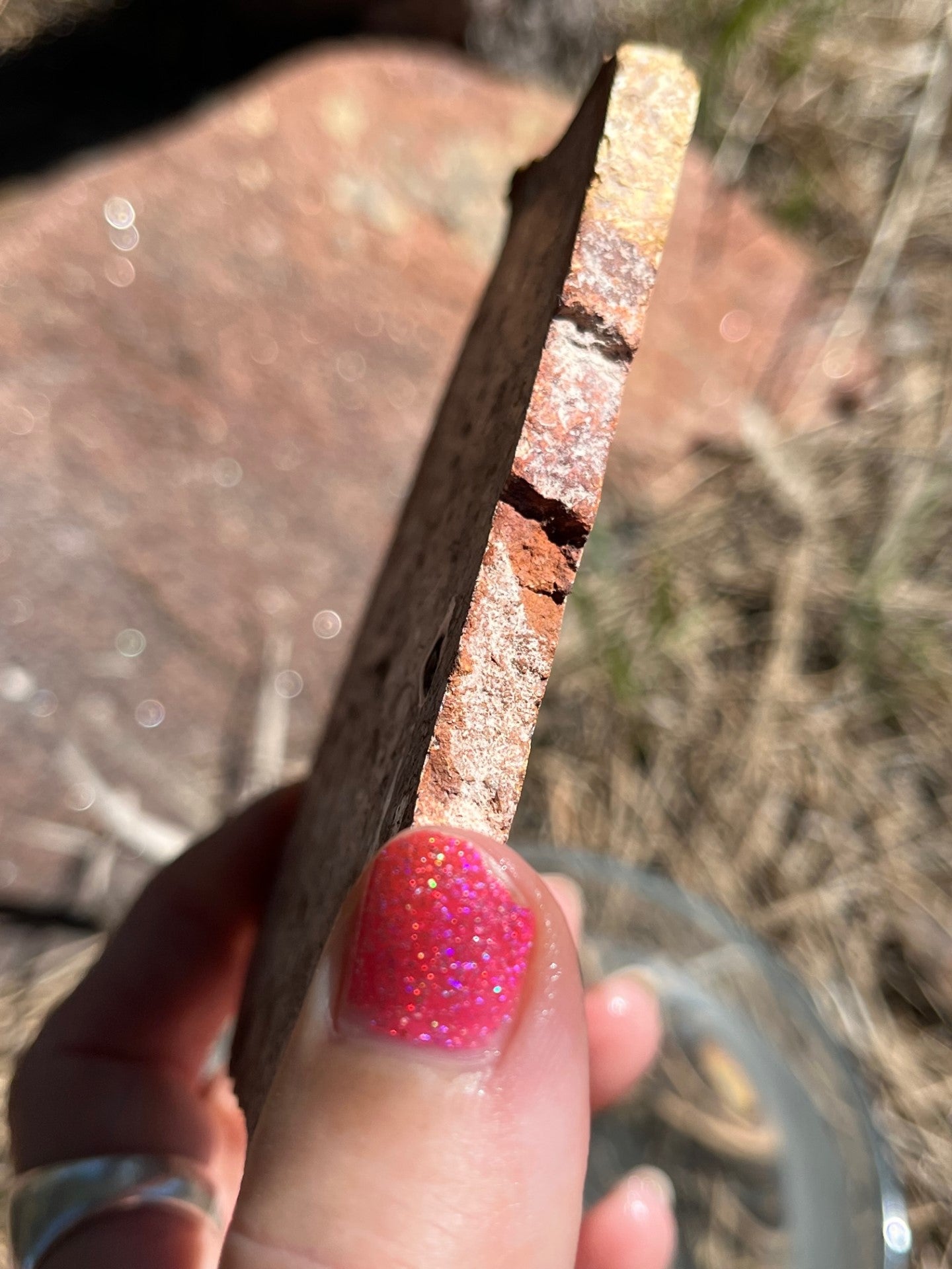 This white and red tightly patterned stromatolite slab from Indonesia measures 4 inches across and is 6.5mm thick.