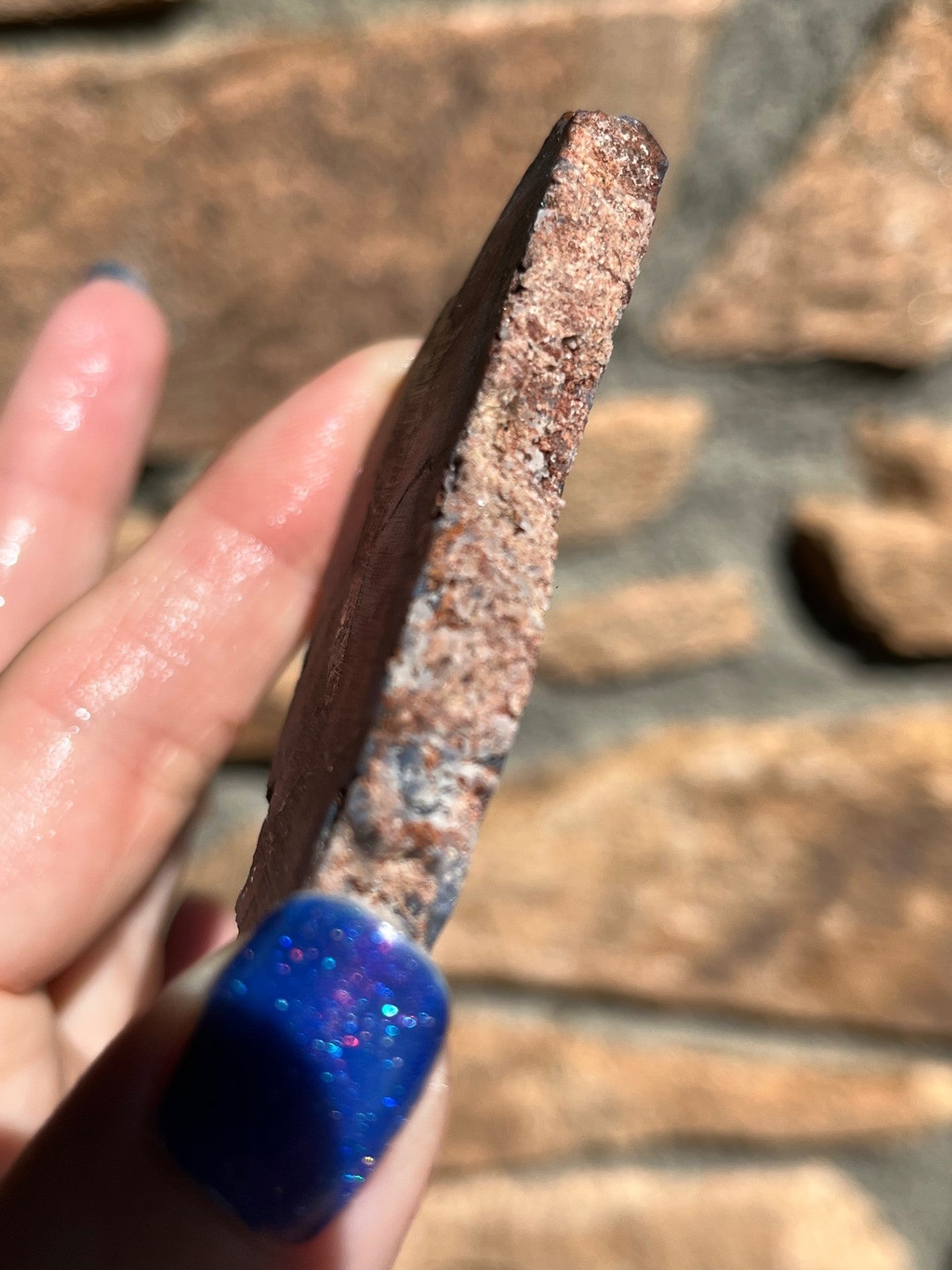 This Laguna stone slab is amazing with it's orbs peeking out from it's banding in the middle. This piece measures 2 1/2 inches long and is 7mm thick. Not polished. Sold for lapidary art.