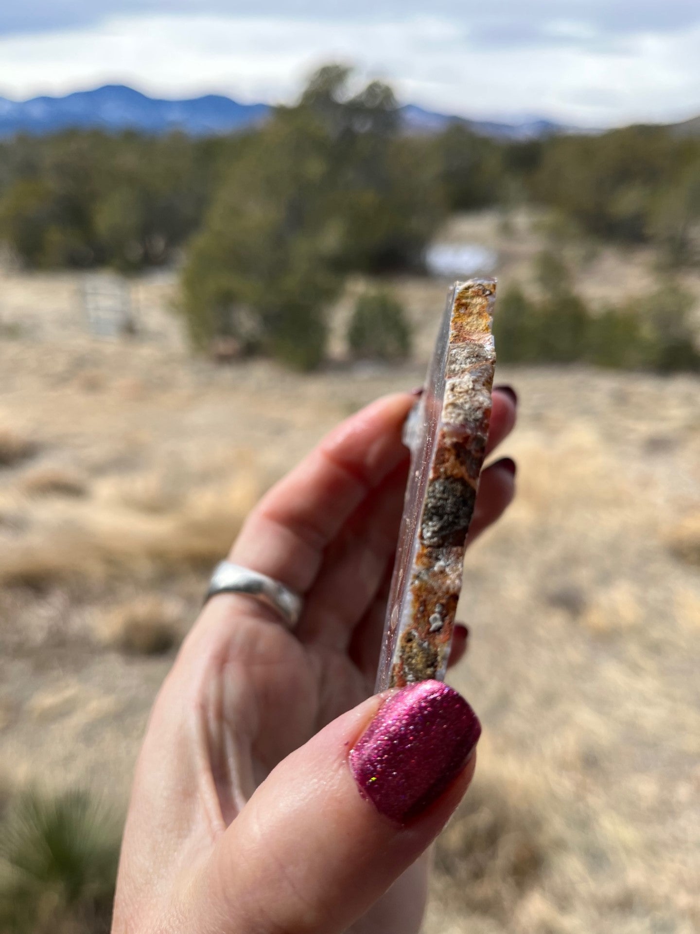 This amazing large Milawi agate slice has nice banding and red translucent quality. It measures 3 1/2 inches across from the two widest points and is 6.5mm thick.